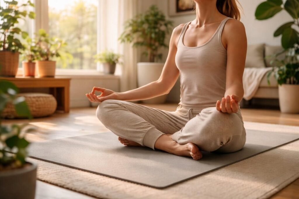 - Practicing yoga or stretching